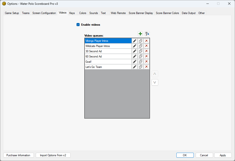 Video player is a feature that allows you to play your own videos on demand on the scoreboard.