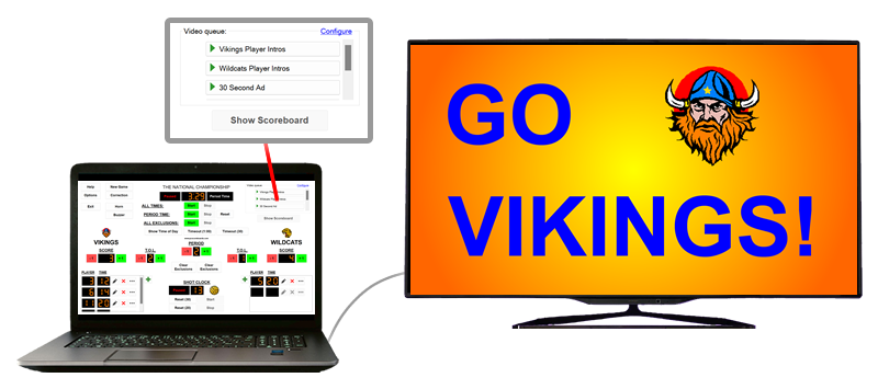 Use this feature to display your sponsor advertisements, player intros, half-time clips, and more.