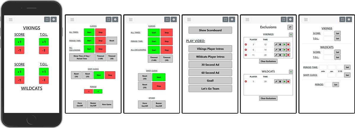 There you can tap buttons to change scores, control the game clock, count timeouts, sound the horn, and more.